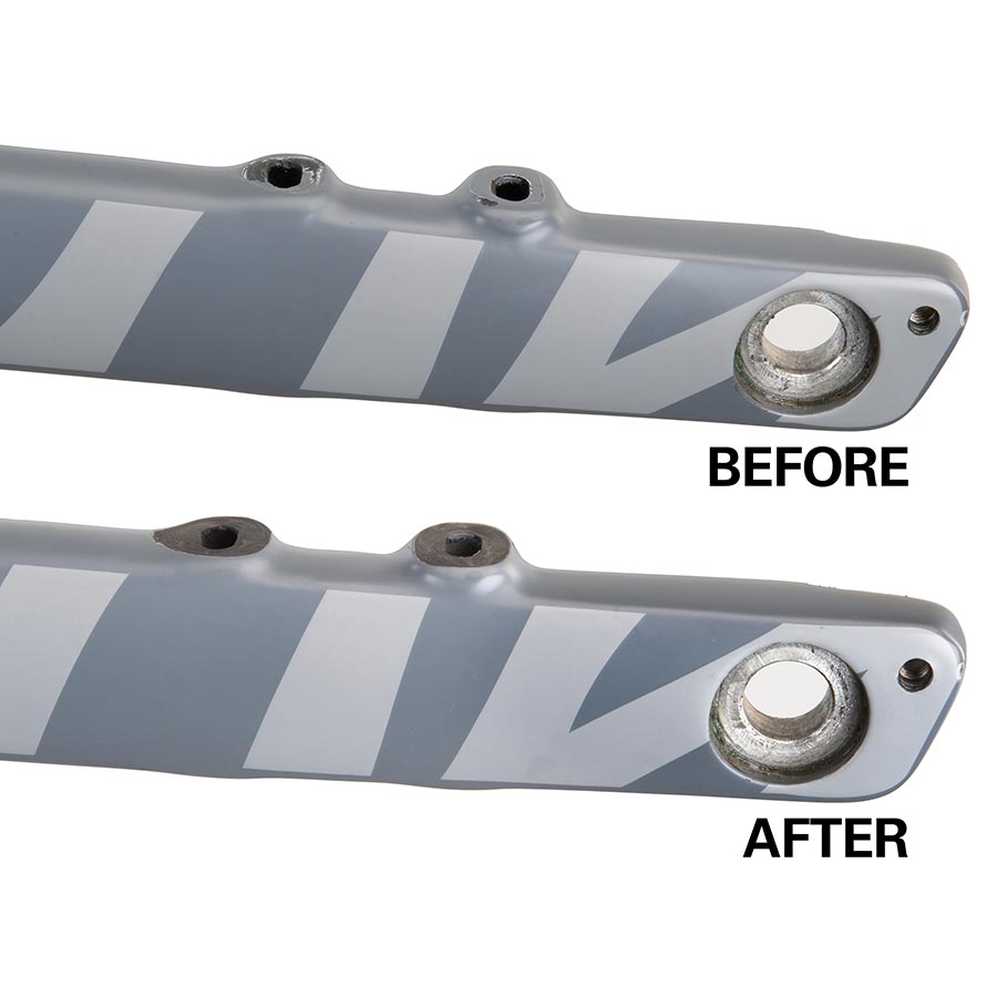 • NOTE: The 2197 is intended for facing carbon fiber only. Aluminum, steel, and titanium disc brake mounts should be faced using the #2171 facing cutter included with the DT-5.2. For carbon frames that feature aluminum inserts (with a carbon/aluminum hybrid mounting surface), use the #2197. When machining carbon fiber, regularly apply water (or a similar solution) to the cutting surface.