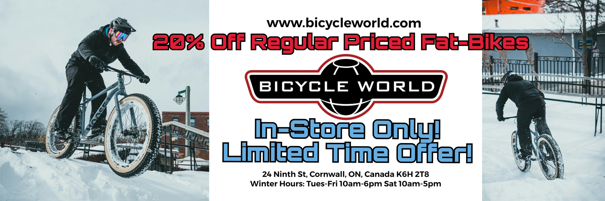 See in store for more details for the winter store products that we carry. Bicycle World 24 Ninth St East, Cornwall, ON, Canada (613) 932-2750.