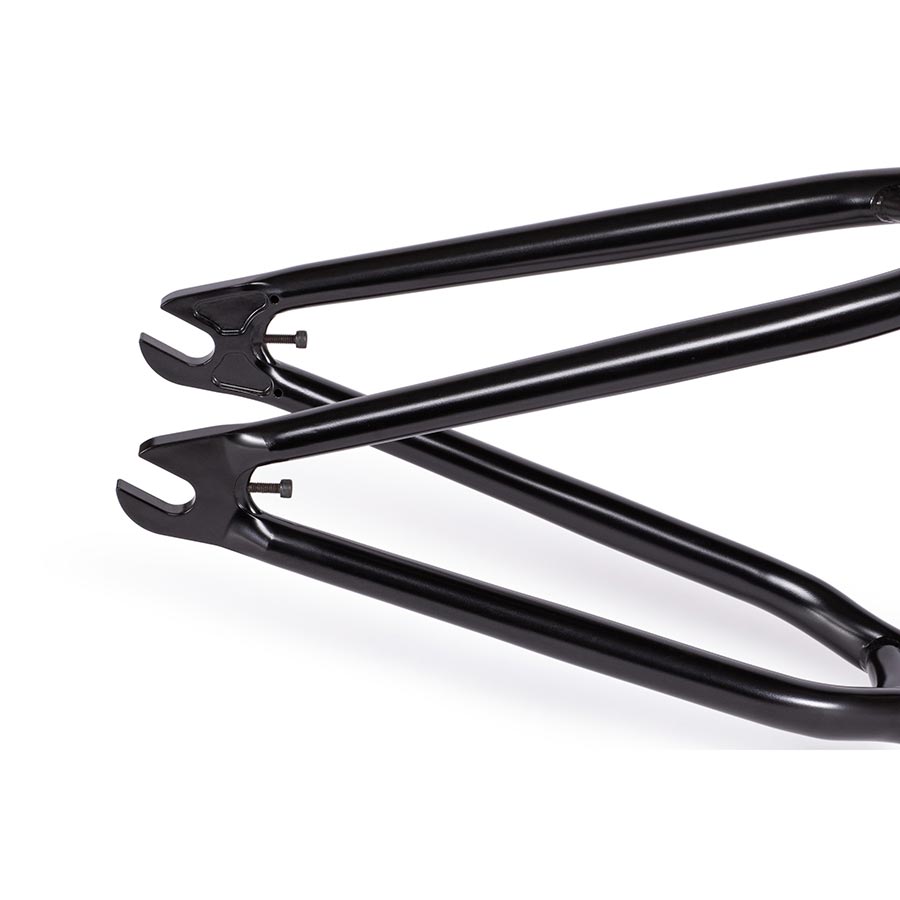 - Revised dropout shape for no overhang with pegs for smoother grind